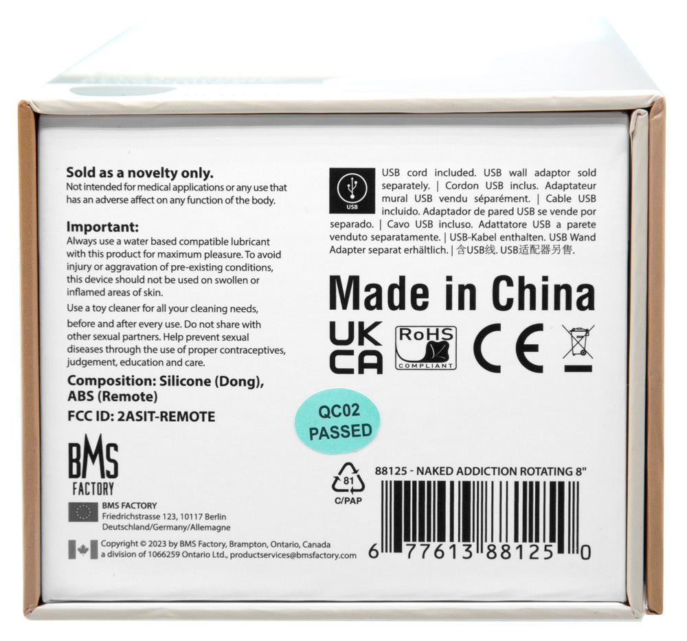 Flexible realistic vibrator 8" Rotating & Vibrating Dong from Naked Addiction that looks like a real penis with delicate veins and a bulging glans. There is a suction cup underneath the large testicles that sticks to any smooth surface – this makes hands-free fun possible. The dildo is also compatible with strap-ons and harnesses.