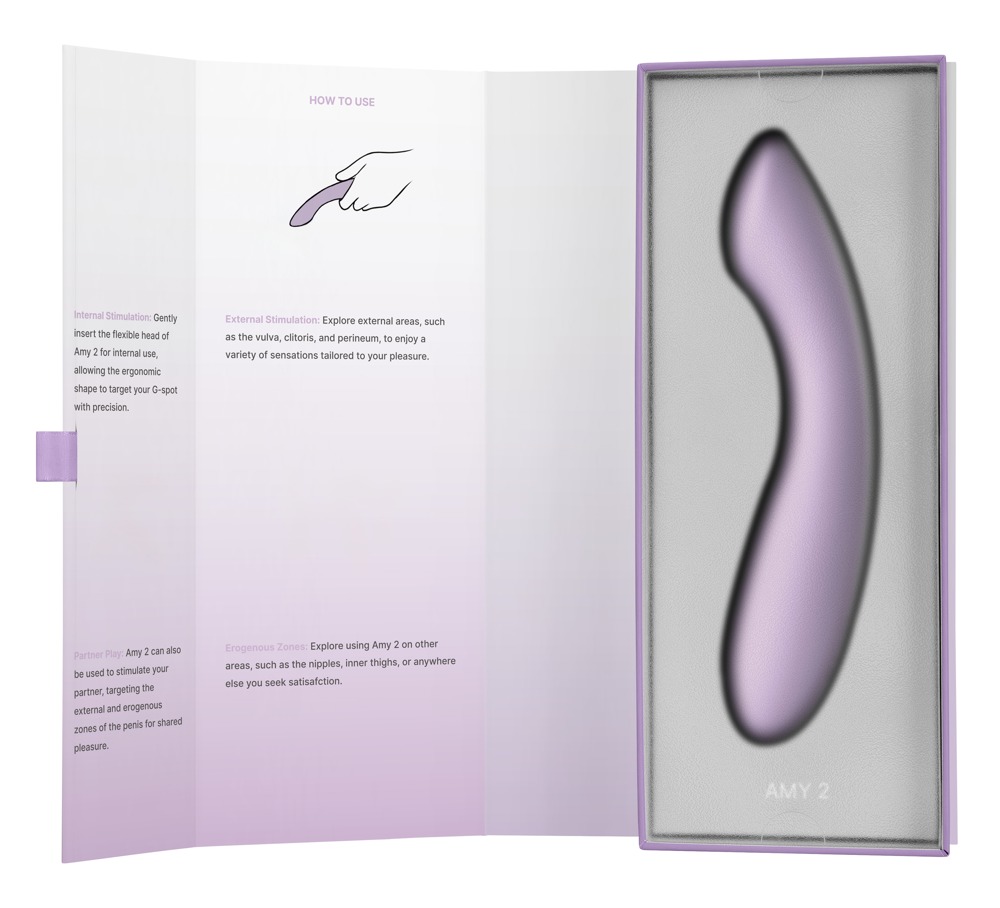 The Amy 2 vibrator from SVAKOM is in a wonderfully ergonomic curved shape and it also has a flattened tip which is perfect for spot-on pleasure spot stimulating in and on the body. The flexible silicone vibrator is velvety soft and this means that it is very easy to hold and it also slides over the skin and into intimate depths almost on its own as well. This mean that the light but intense vibrator can also be easily integrated into solo or couple's fun.