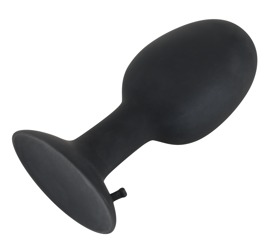 The flexible black butt plug, Backdoor Friend XLarge from You2Toys, has a pleasant rounded tip. It has a velvety smooth silicone surface which means that it can slide in very gently into the back pleasure canal. It provides an arousing full feeling and it also has a stimulating surprise as well: it has a rotating inner ball! It also has a suction cup which is the anal-safe stopper.
