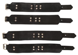 This Bed Restraint Set from ZADO will turn any bed into a professional bondage playground. The H-belt system of adjustable, tear-resistant fabric straps fits under any mattress. The leather restraints for the hands and feet are then hooked onto the 4 snap hooks on each of the straps. The comfortable hand and feet restraints are made out of sturdy leather and have buckle fasteners – their circumference can therefore be adjusted.