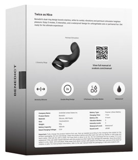 A powerful but quiet motor provides 5 diverse vibration modes in 5 intensities that can be controlled separately and together at the push of a button. Benedict can also be used under water because it is waterproof! The velvety soft, skin-friendly silicone means that it slides on easily and fits around any penis size or shape.