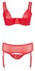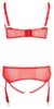 You can surprise your partner with a striptease because the bra and string have cheeky extras. The fiery red shelf bra has lace cups that can be unbuttoned and removed. The lace cups are attached to adjustable and removable straps. The bra also has slightly padded cups, wires for support and adjustable straps. This means that you can show off exactly what you’ve got. The red string with suspenders also provides a great view because the lace part at the front can be unbuttoned and removed. The four suspender straps are adjustable and removable. This means that nothing will stand in the way of your next sexual adventure!