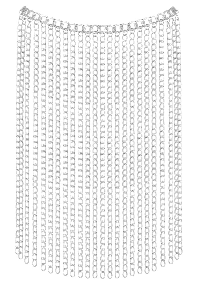 The silver-coloured chainmail collar/skirt from Bad Kitty has decorative chains. It is unisex and can be adjusted to fit, thanks to the snap hook fastener. It can either be worn as a collar around the neck or as a skirt/belt around the waist or hips. It can be worn on its own for an erotic occasion or combined in a stylish way with tight-fitting outfits. The striking chain decoration is definitely an eye-catcher!