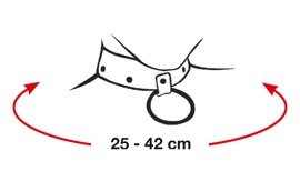 Circumference: 25–42 cm. Plastic, split leather from cow hide (plant-based/synthetic tanned).