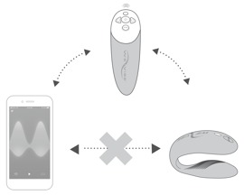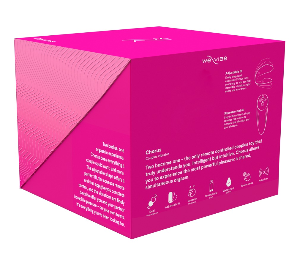 The 10 diverse vibration modes can be easily controlled with the remote control. The remote control responds intuitively to pressure, thanks to the squeeze function – the harder it's squeezed, the stronger the vibrations become. The Chorus itself has touch-sensitive sensors (Touch Sense), which means that the vibrations can be adjusted during intercourse with body or finger movements. More vibration modes, synchronisation to music and 3 additional Touch Sense modes are possible on the free We-Vibe app on a smartphone. The toy can also be connected to We-Vibe partner toys or a partner can control the Chorus remotely over long distances. The Chorus can be used and enjoyed anywhere and everywhere because it is waterproof.