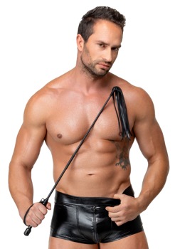 The 4-piece black Crop Set from Bad Kitty contains a universal handle and 3 crop attachments: flogger, crop and cane. Made out of extremely light fibreglass. The attachments can be quickly attached to the long handle and swapped depending on needs and desires. The grooved handle with its wrist strap fits firmly and securely in the palm of a hand. This allows each of the 3 extra-long, flexible attachments to be guided in a balanced and precise way. The different types of attachments provide diverse fun that can be gentle or firm.