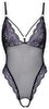 The beautiful body from Cottelli LINGERIE is made out of delicate powernet and floral lace in 2 colours. The floral lace is on the wireless cups and high legs. It is soft and stretchy which means that it is extremely comfortable to wear. There are stretchy straps, which are joined together by a ring, in the cleavage area. The straps are adjustable. There are two stretchy straps over the open crotch area.
