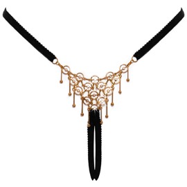 The crotchless string from Cottelli LINGERIE is made out of soft and very stretchy straps. There is white gold-coloured decoration at the front and in a triangle shape at the back. The decoration is made up of rings, swaying rods with balls at the ends, small chains and sparkly gems. The waistband can be adjusted at the sides. Seductively crotchless