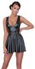 The short dress from Cottelli PARTY is made out of black matte look material. The top part of the dress is tight fitting and the bottom part is a flared, swaying skirt part. It is very low cut at the front. There is also an adjustable waist belt with two rings. Soft and stretchy for a comfortable fit.