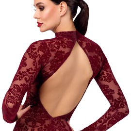 The long-sleeved, tapered dress Kink Royal from Noir is ankle-length and in a breathtaking burgundy red colour. It is also decorated with velvet flock print as well. It is soft and stretchy for a very comfortable fit and freedom of movement. There is a large cut-out at the back. It also has an elegant stand-up collar with a hook fastener at the back. The very high slit at the back of this skin-tight dress ensures optimum freedom of movement and adds the finishing touch to this seductive look.