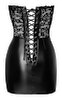 The strapless, black tube mini dress Libido from Noir is made out of a beautiful mixture of materials – delicate lace (top part) and shiny matte powerwetlook (skirt part). It is soft and stretchy for a very comfortable fit. It is in a tapered corset style with emphasising stitches at the front. There is lacing at the back that goes right down to the buttocks. The lacing can be tightened to fit.