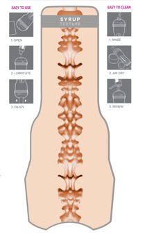 The easy-to-hold masturbator Emma Hix Syrup from Fleshlight is in a discreet torch design and it has a realistic replica of the erotic star Emma Hix's vagina. The pleasure canal has various stimulating textures inside and different diameters which means that it feels like Emma's tight vagina. It is also perfect for intense, orgasmic massages during a handjob. The inner sleeve is made out of extremely soft, skin-like Superskin material. There is also Emma's autograph next to the opening. The sleeve can also be removed from the case for cleaning.