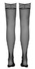 Hold-up stockings with a fancy ring pattern around the top parts. With silicone lining for a non-slip fit. 17 denier. Oeko-Tex certified.