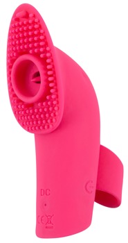 The Licking and Pulsating Finger Stimulator from Sweet Smile has a tongue that moves up and down in 10 speeds. It also has a pulsation/suction function in the surface that has soft dots on it. Everything can be easily adjusted with the button on the toy. The wide, flexible, non-slip ring fits wonderfully on the finger. The Finger Stimulator is covered in silicone material which feels great against the skin during pleasure. It can be recharged with the included USB cable.
