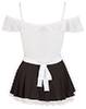The top is made out of white lace. The thin straps are adjustable and the lace sleeves can be worn off the shoulders. The opaque black skirt is slightly flared and anybody who looks a bit closer will be able to see a little bit of white lace… The included apron, which can be tied at the back, adds the final touch to this sexy outfit.