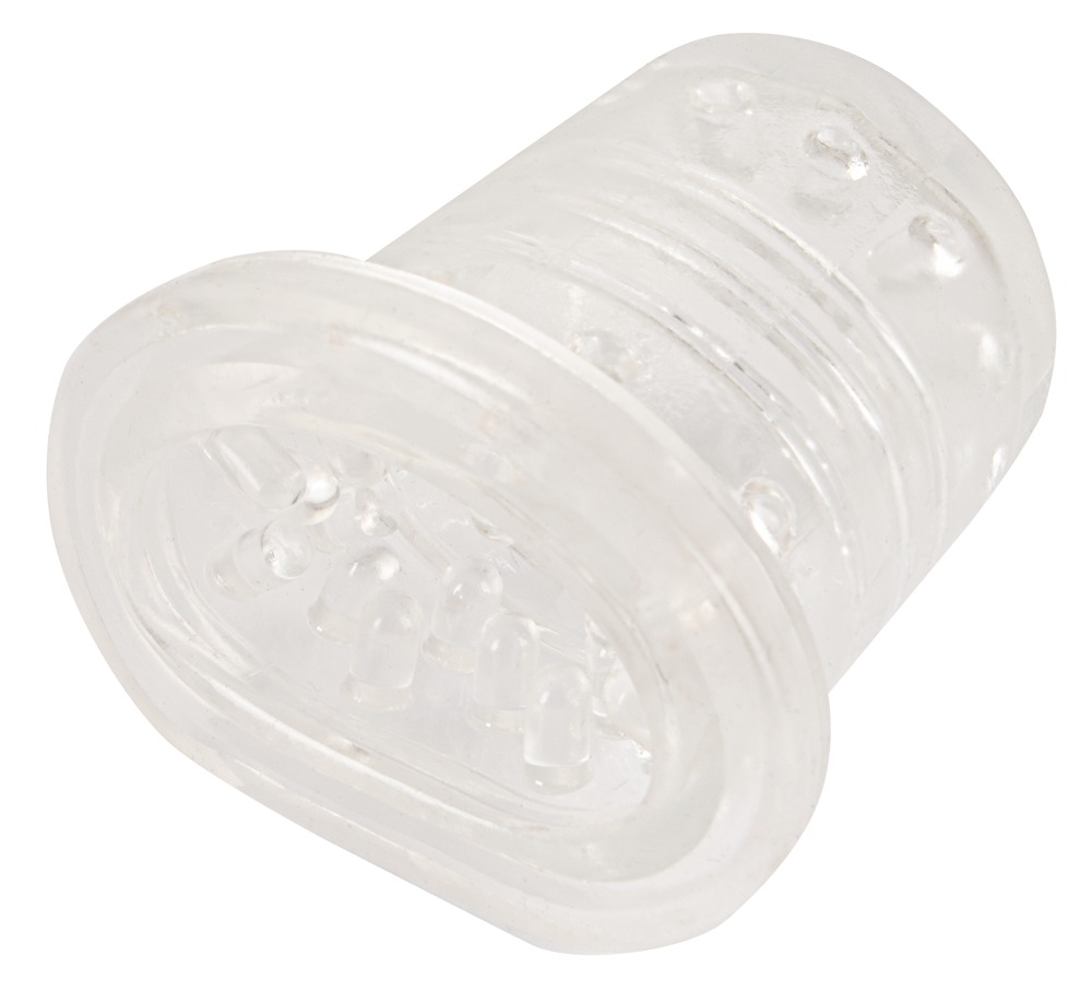 The soft, stretchy sleeve is in a neutral design and has soft textures inside that additionally massage the penis. The sleeve can be easily removed for cleaning.