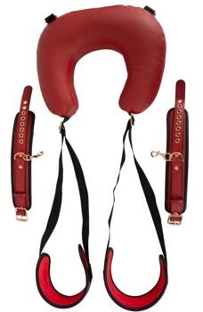 The Neck-Cushion-Thigh-Restraint from Bad Kitty stands out because of its luxurious and stylish design in high-quality red and black imitation leather and gold-coloured accessories. A real highlight for exciting position and restraint play!