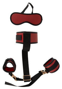 The Neck to Wrist Bondage Set from Bad Kitty stands out because of its luxurious look in elegant black and red imitation leather and the gold-coloured accessories. The stylish set with the combined neck & wrist restraints and a blindfold is a real highlight and offers a wide range of possibilities for exciting games and restraining fun!