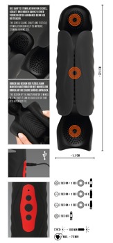 Easy-to-hold masturbator Penis Trainer with 3 Point Stimulation from Rebel with flexible wings that hold onto the shaft of the penis securely. The flexible segments gently cover the glans and testicles. This means that the masturbator can be used by people with an erectile dysfunction. The soft dots in the glans segment massage and pleasure the glans. There are pronounced, stimulating grooves in the middle segment and there are sturdier dots in the testicle segment. This means that the penis and testicles are thoroughly stimulated and also trained effectively for more stamina and power!