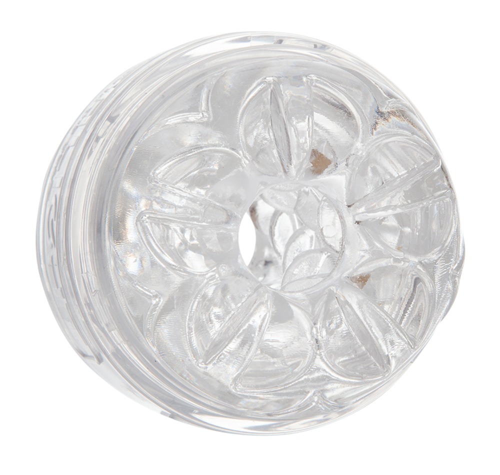 Transparent masturbator made of SuperSkin material with a textured sleeve. Open on both sides – perfect for the longer penis. Only half the size of the other Fleshlight masturbators: 8.8 cm long, Ø 1.8 cm, stretchable. Includes transparent storage box.