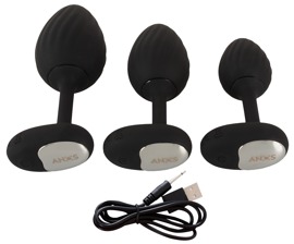 Each of the cone-shaped vibro-plugs is made out of high-quality silicone and is easy to insert. The pronounced grooved texture is perfect for deep stimulation. Each plug also fits perfectly in the anal tunnel as well. The wide stopper prevents it from sliding in too far and it is a stylish eye-catcher too, thanks to its silver-coloured metal detail. The extremely narrow tapered part ensures comfortable wear during every movement. This means that the quiet vibro-plugs can also be worn for a longer period of time – e.g. as an orgasm enhancer during solo play and sex or as a secret anal adventure during everyday life.
