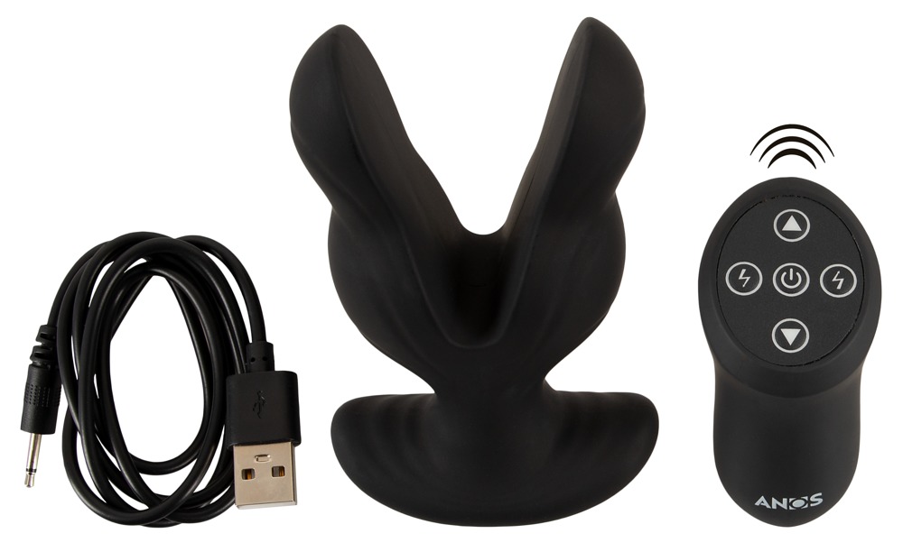 The RC Power Expander Plug from ANOS has vibration and e-stimulation. For perfect backdoor stretching and intense stimulation. The tips of the fancy 2-armed plug are pressed together and then inserted. It returns to its original size once it is in the anus. 2 powerful motors provide reliable and diverse e-stim and vibro pleasure.