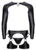 The 3-piece set from Svenjoyment Bondage contains a bolero, hip harness and jock. Everything is made out of trendy black matte look material, which is soft and stretchy for a comfortable fit. With lots of silver-coloured rings and snap hooks on the sleeves for various soft bondage fun.