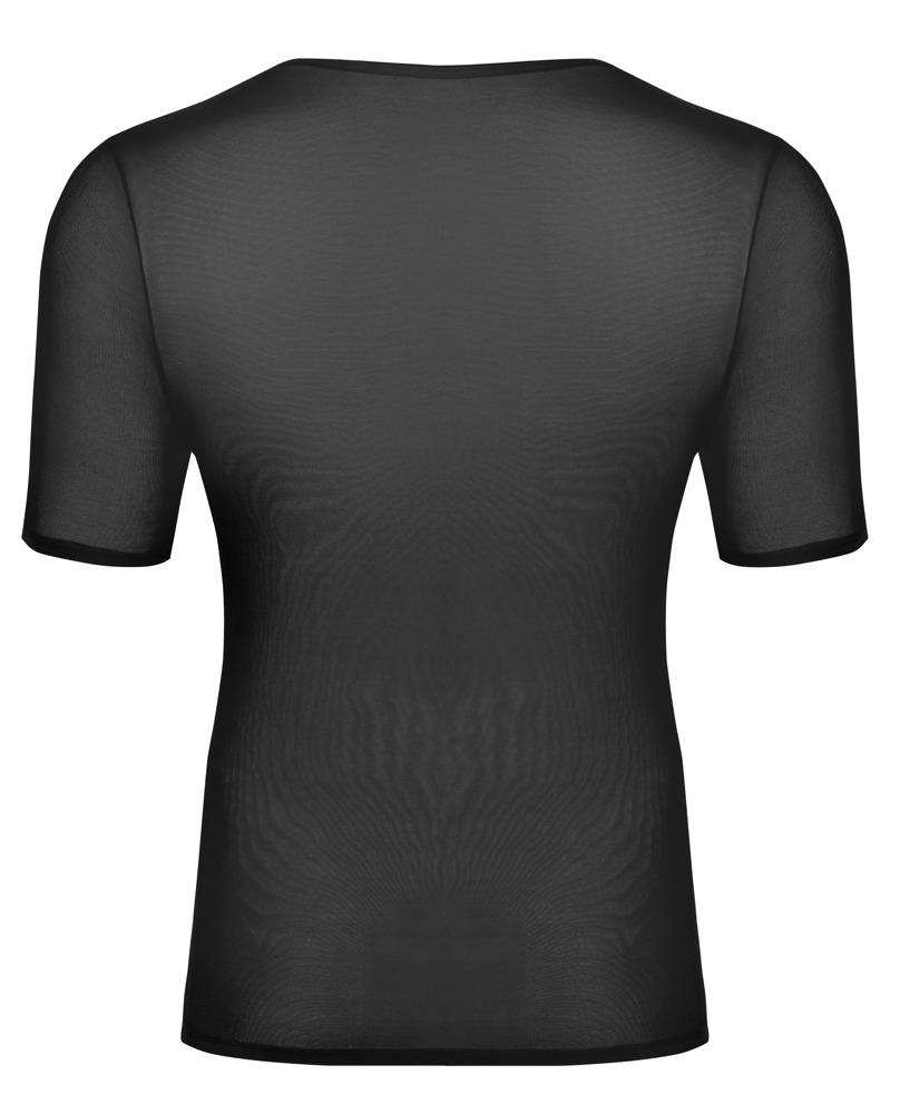 The beautiful, simple, black shirt from Finesse HOMME has short sleeves and is made out of delicate powernet. It is soft and stretchy for an extremely comfortable fit.