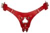 Red strap-on from Bad Kitty in a stylish leather look with lacing in the back. The size is adjustable for a perfect fit (size S-L). It is universally compatible with many suction cup dildos and vibrators. Simply open the press studs in the front and insert the dildo/vibrator using the metal ring.