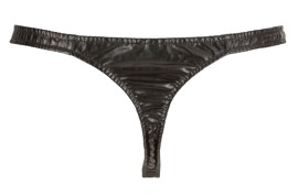 Shiny imitation leather string with a flexible front hole. The penis and testicles are pushed through this hole, so that one can show off what he's got!
