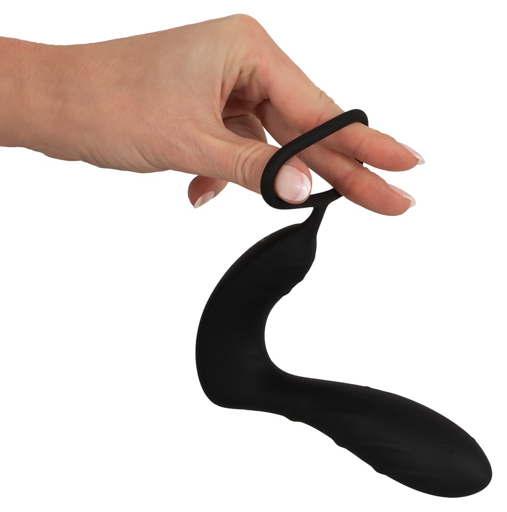 The stretchy ring grips the penis firmly and can effectively support the erection thanks to the blood stasis effect. At the same time, the inserted plug with its special P-spot design and 10 vibration modes provides intense stimulation in the back of the penis. The flexible connection bar nestles close to the perineum and provides additional stimulation. The varied vibrations can be conveniently controlled at the touch of a button directly on the toy or with the practical remote control - even by your partner.