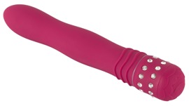 A narrow vibrator with sparkly rhinestones at the bottom of the shaft. The multi-speed vibrations from gentle to strong will fulfill all your desires. This pleasure-giver is 19.3 cm long and 2.5 cm to 3 cm in diameter. ABS, PU coating.