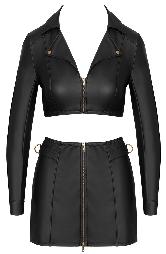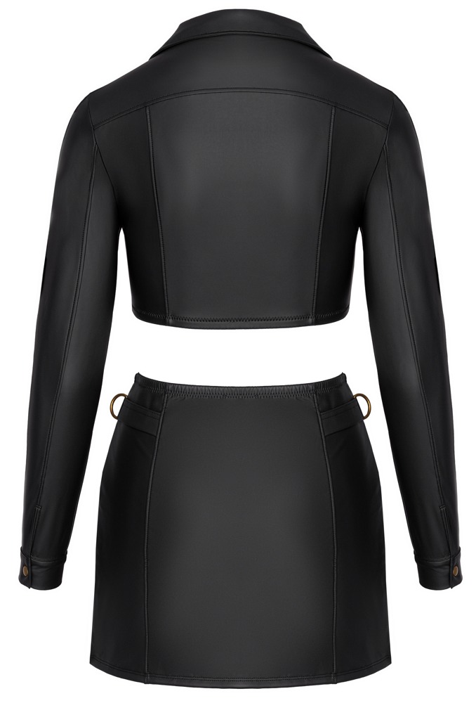 Ein Statement-Look für unvergessliche Nächte! Das cropped Jacken-Top sitzt hauteng und betont, was du hast. Der Minirock mit Reißverschluss spielt mit deinen Kurven. Die coolen Messing-Nieten und -Ringe bringen den extra Style. Und der weiche Mattlook sorgt für maximalen Tragekomfort. Sei sexy, rebellisch und ein wahrlich aufregender Blickfang!