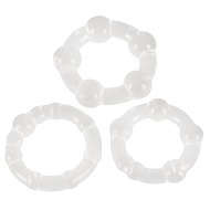 Die dehnbaren, stramm sitzenden Penisringe können deine Ejakulation effektiv hinauszögern. Das steigert deine sexuelle Leistungsfähigkeit und vertieft deine Orgasmen. Dabei kannst du die 3 Penisringe nach Lust und Laune miteinander kombinieren und sie einzeln oder auch in Kombination an Hoden und Peniswurzel platzieren. Zur Potenzsteigerung, aber auch gerne mal als Schmuckstück. Die genoppte Struktur sorgt nicht nur für erregende Zusatzstimulationen, sondern auch für herrlich festen Sitz. So kannst du auch dein Kondom mit dem Ring zusätzlich fixieren. Sicherer geht’s nicht.