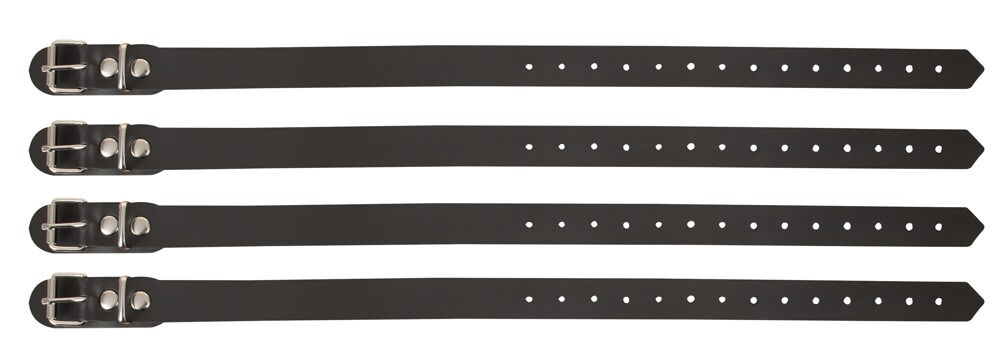 - Inklusive 4 Fesselriemen: Zur Fixierung von Händen und Füßen. Aus festem Leder mit verstellbaren Schnallenverschlüssen. Werden einfach durch die Ringe gezogen.