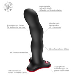 Mit dem BOUNCER kannst du sehr vielseitig spielen. Der ideal gebogene Kugel-Dildo nimmt zielgenau Kurs auf G-Punkt, A-Punkt oder Prostata. Eine Portion wasserbasiertes Gleitgel sorgt dabei für mehr Geschmeidigkeit. Mit seinem Saugfuß haftet der Dildo auch auf allen glatten Flächen (z. B. im Bad), sodass du ihn freihändig genießen kannst. Du kannst den Saugfuß-Dildo auch in deinen Strap-on einsetzen, um damit lustvoll zuzustoßen. Lass deiner Spielfantasie einfach freien Lauf.
