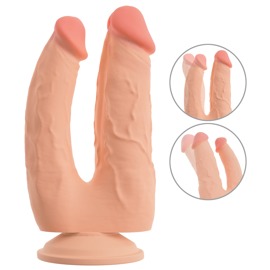 Dieser Doppeldildo bietet dir gleich zwei Gründe zum Stöhnen – und beide sehen nicht nur verdammt echt aus, sondern fühlen sich auch so an! Die beiden prallen Naturdildos warten nur darauf, dich gleichzeitig auszufüllen – flexibel, angenehm fest und immer bereit, dir zu folgen. Das super-softe Natureskin-Material fühlt sich an wie echte Haut und macht jede Berührung zum Erlebnis. Die seidig-glatte Movable Skin-Oberfläche gleitet bei jedem Stoß herrlich vor und zurück – wie beim echten Doppeldecker-Sex! Die ausgeformten Eicheln und die markanten Adern setzen dem Ganzen noch die Krone auf und sorgen für ein Extra an Realness. Gönn dir das volle Doppel-Vergnügen und lass dich von diesen Boys ordentlich verwöhnen – so intensiv, dass du fast vergisst, dass sie nicht echt sind!