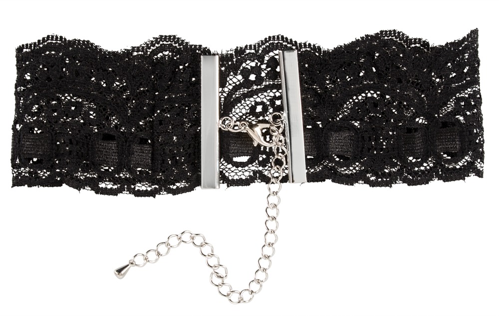 - Schnitt & Material: Spitzen-Halsband mit mehrfach verstellbarem Ketten/Karabinerverschluss. 100% Polyester.