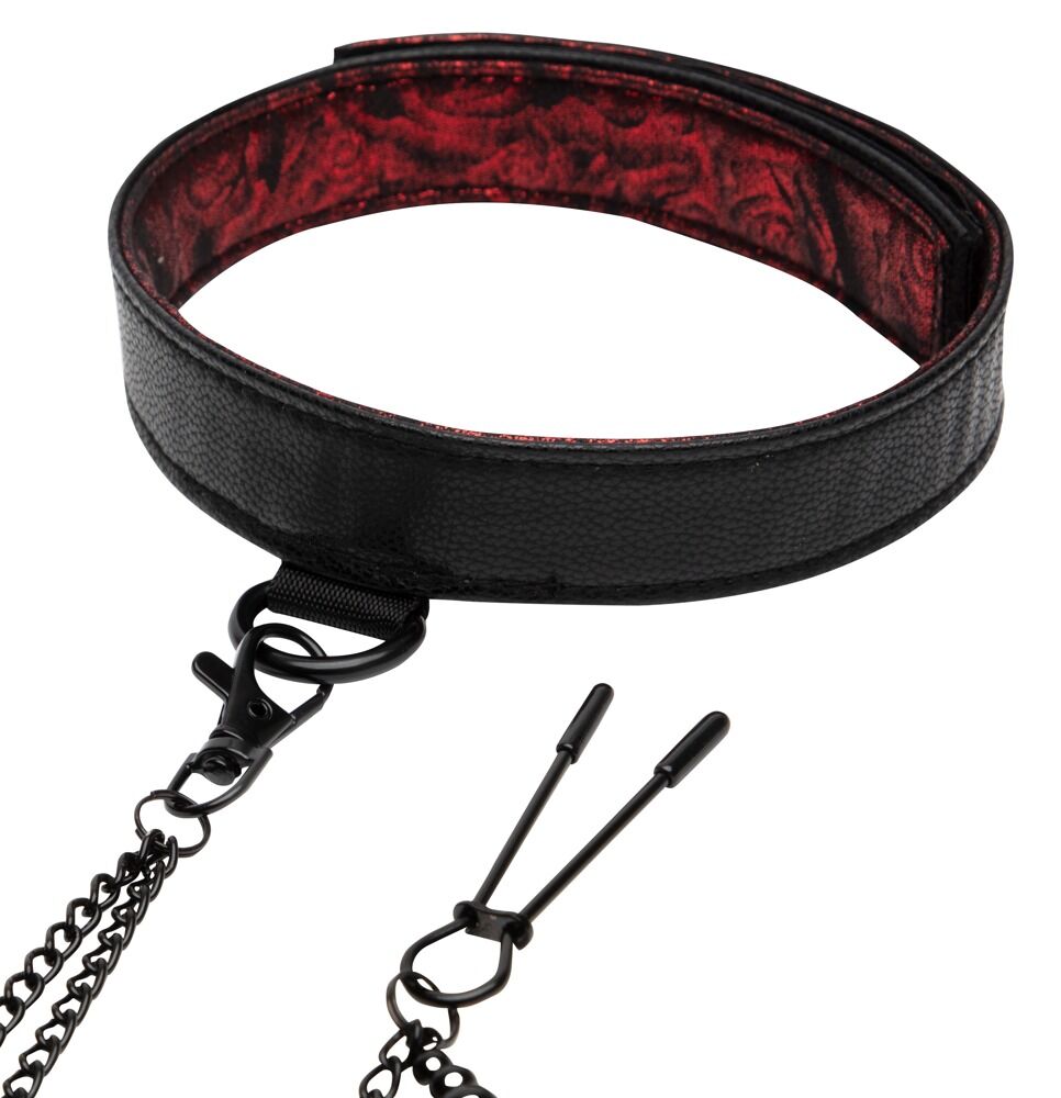 Halsfessel mit Nippelklemmen „Sweet Anticipation Collar Nipple Clamps“, verstellbar