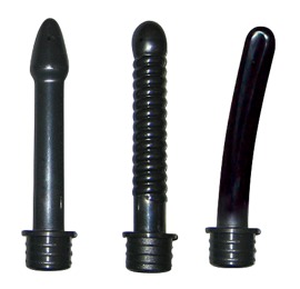 - Intimdusche bestehend aus weichem Pumpball mit 3 verschiedenen Aufsätzen: 1 x leicht gebogen & glatt, 1 x pfeilartig geformt & glatt, 1 x mit Spiral-Struktur.