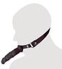 - Halbrunder Knebel mit Außendildo aus Silikon an Kopfriemen aus hochwertigem Lederimitat.