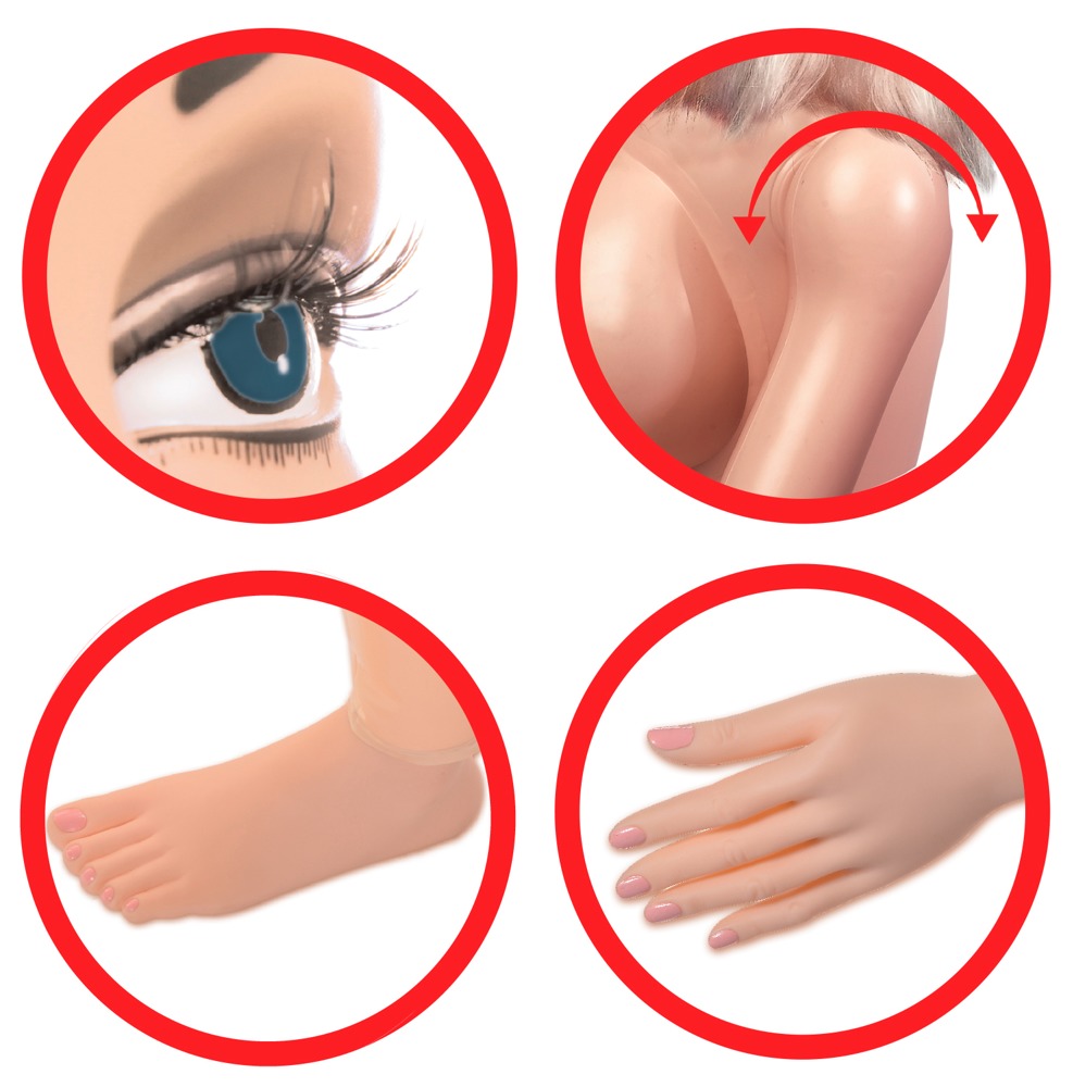 Mit ausgeformten Händen und Füßen. Masturbator herausnehmbar.
