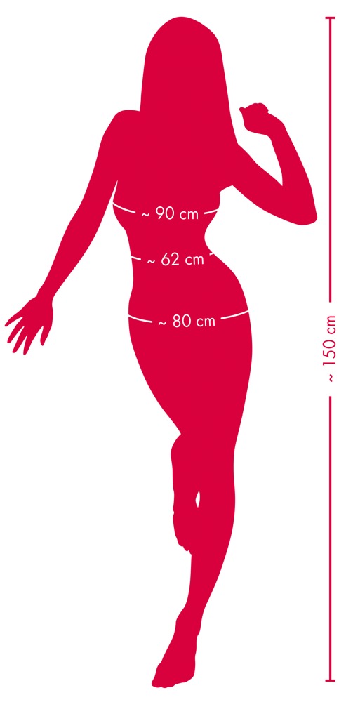 Gesamtlänge 150 cm, Einführtiefe Mund 14 cm, Einführtiefe Anus/Vagina 12 cm. PVC, TPR.