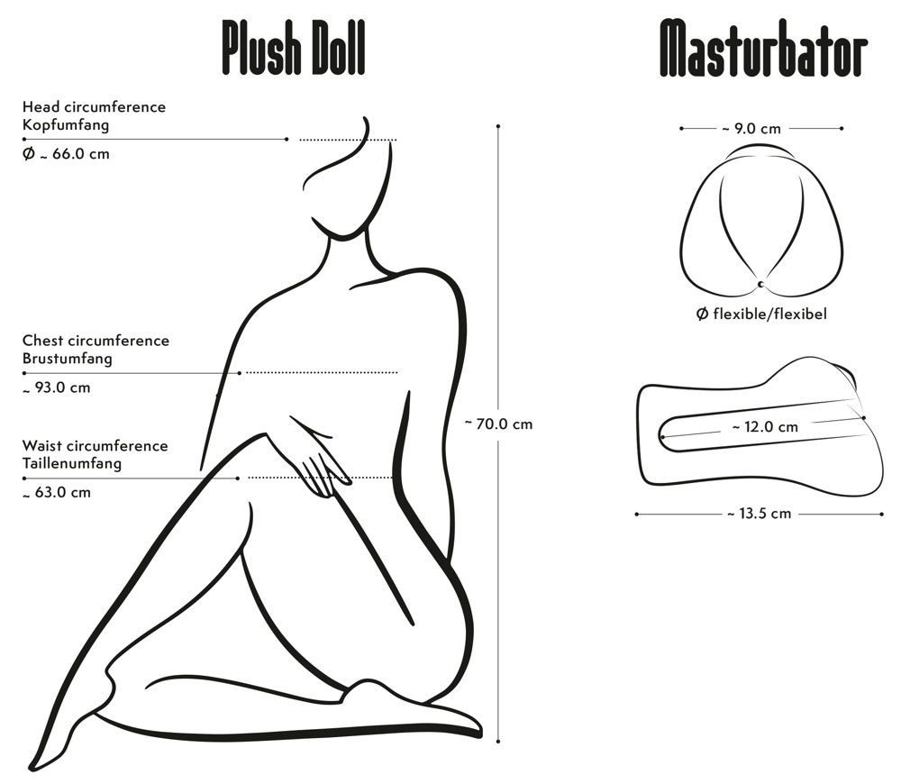 Lebensgroß, inklusive Vagina-Masturbator zum Einsetzen.