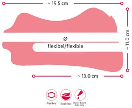 - Sehr realistisch nachgebildet: Sinnliche Lippen mit Zunge, zarte Vulvalippen, süße Afterrosette.