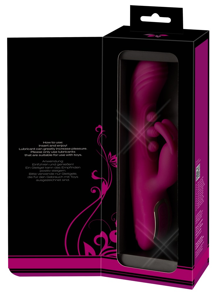 Den geriffelten Schaft führst du vaginal ein, sodass das softe Klitoris-Bunny direkt deinen Hotspot berührt. Etwas wasserbasiertes Gleitgel macht dabei den Silikonvibrator noch geschmeidiger. Einfach per Knopfdruck steuerst du dann die beiden Funktionen. Die 3-fachen Klopf-Impulse im Schaft sind von den Vibrationen in der Spitze und im Klit-Bunny getrennt steuerbar. Jeweils 7 Modi bieten dir reichlich Abwechslung. Wenn du den Rabbitvibrator einmal richtig positionierst und deine Lieblingsmodi eingestellt hast, lässt er sich sogar freihändig genießen. Probier es aus! Und: Keine Angst vorm Squirten, der Vibrator ist IPX6 spritz- und strahlwassergeschützt.