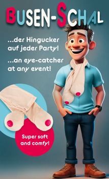 Der Busen-Schal kann mehr als nur warmhalten, er heizt die Stimmung auf! Ausgestattet mit zwei prallen, weichen Brüsten und knallpinken Plüschnippeln zieht er jeden Blick auf sich. Wickel dir den leichten, flauschigen Schal um den Hals und lass die Brüste genau in der richtigen Höhe baumeln – der freche Eyecatcher für Karneval, Fasching, Partys, Junggesellenabschiede, Wintergrillen, Après-Ski und überhaupt.