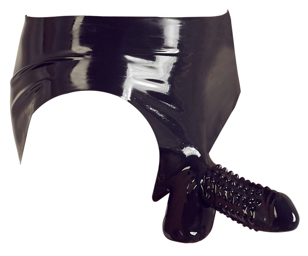 • Schnitt und Material: Enganliegender Slip aus Latex mit genoppter Penis- und Hodensleeve mit ausgeprägter Eichel. Stärke 0,35 mm. Hergestellt unter der Verwendung von Naturkautschuklatex, der Allergien verursachen kann.