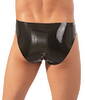 - Schnitt & Material: Slip mit Showmaster-Öffnung (Ø 3,5 cm) für Penis und Hoden. Latex.