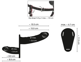 String: Hüftumfang verstellbar von 76 cm–110 cm.